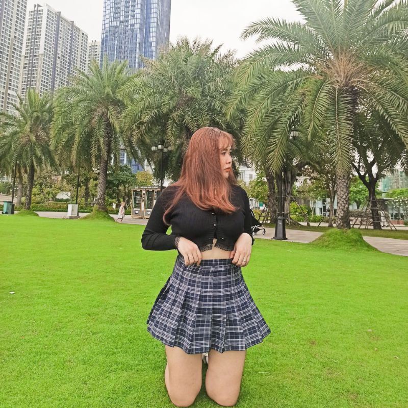 Giới thiệu Set chân váy tenis caro+ áo thun gân croptop tay dài bigsize 60-90kg
