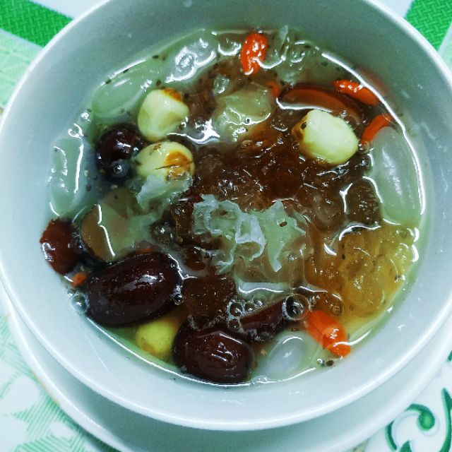 CHÈ DƯỠNG NHAN Khoẻ & Đẹp trong từng tế bào. ⭐👍💪💟💕 👉Set nhỏ nấu được khoảng 10 chén (ly) 👉mỗi tuần ăn 3 - 4 chén. ---------_---------_------- Set gồm có +10g tuyết yến + 20g tuyết liên tử + 30g nhựa đào + 10g kỉ tử + 30g long nhãn +40g táo đỏ nhỏ + 10g hạt chia + 10g nấm tuyết. Free lá dứa + một ít đường phèn. 🥑🥑🥑🥑🥑🥑🥑🥑🥑 Xuất xứ: hầu hết các loại là đặc sản nông sản từ Trung Quốc. Hạt chia Úc, hạt é + hạt sen + nhãn của Việt Nam. Ngày đóng gói ngày quý khách đặt hàng. Shop cam kết hàng mới. Hsd: 3 tháng từ lúc nhận hàng. Bảo quản nơi khô thoát, tránh ẩm mốc. ⚡⚡⚡ [Quý khách lưu ý, đặc thù các loại hàng nông sản sẽ có khác biệt theo từng đợt hàng, mùa vụ nên chất lượng có thể không đồng đều 100%, shop luôn chọn loại ngon nhất có thể.] ×××××××××× Cách nấu chè dưỡng nhan 📢các loại tuyết yến, nhựa đào, tuyết liên tử: lấy vài viên (<20g) rửa nhẹ, ngâm thật nở, ngâm nhiều nước, khoảng 15 đến 24h. Vớt ráo. 📢 Nấm tuyết ngâm nở, rửa sạch, cắt nhỏ. 📢 Táo đỏ ngâm 20 phút, vớt ráo, bổ làm đôi (để nguyên trái dùng mũi dao khía dọc vài đường cho ngấm đường lúc nấu mới ngon) 📢 Long nhãn. Rửa nhẹ, để ráo. Không ngâm. 📣Hạt sen ngâm 30p, hầm cho mềm. Hầm nồi áp suất càng nhanh. 📣Hạt chia/é ngâm nở 5p.