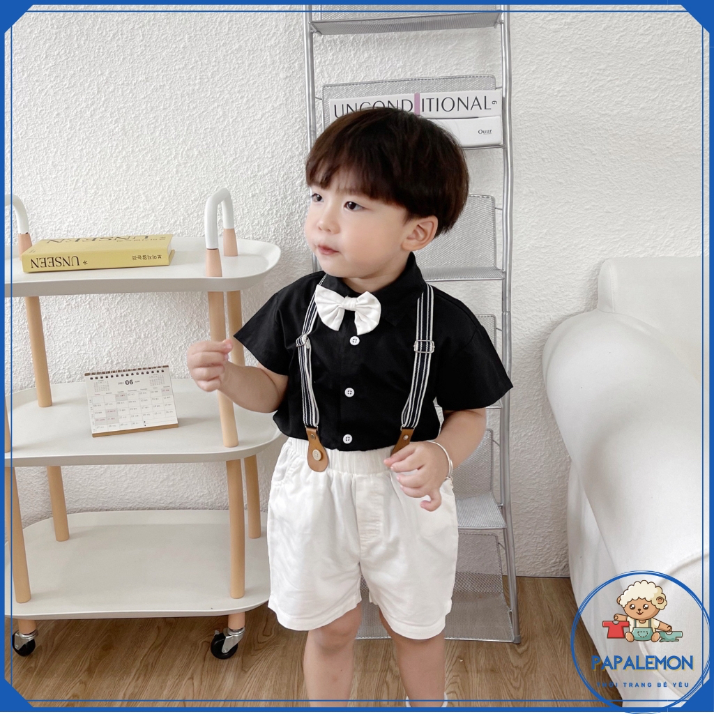Thời Trang Trẻ Em > Quần áo em bé > Bộ quần áo > Set công tử bé trai LEEMON B069 kết hợp áo sơ mi bé trai và quần kaki bé mềm mại kèm theo dây đai nịt, nơ cổ PAPALEMON