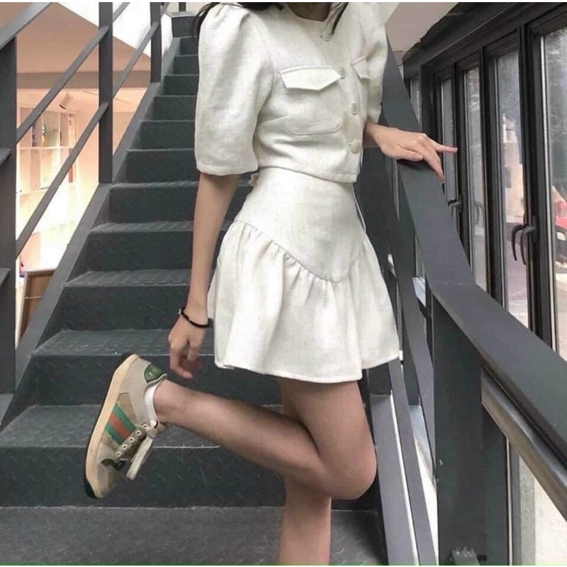 Giới thiệu Sét Dạ Ngắn Trắng Váy Chun Xoè JARI-CLOTHES Đuôi Cá Tay Lửng Dễ Thương Phong Cách Hàn Quốc