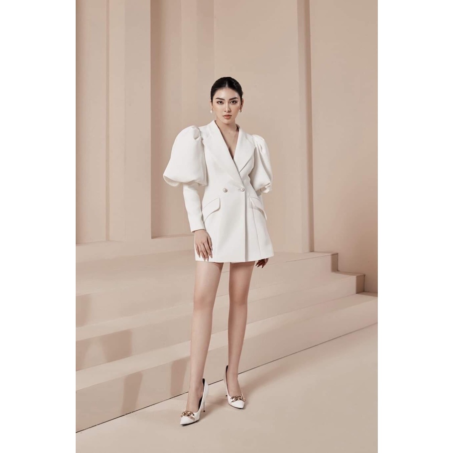 Set đầm vest ôm body tay phồng phối túi nút kèm quần