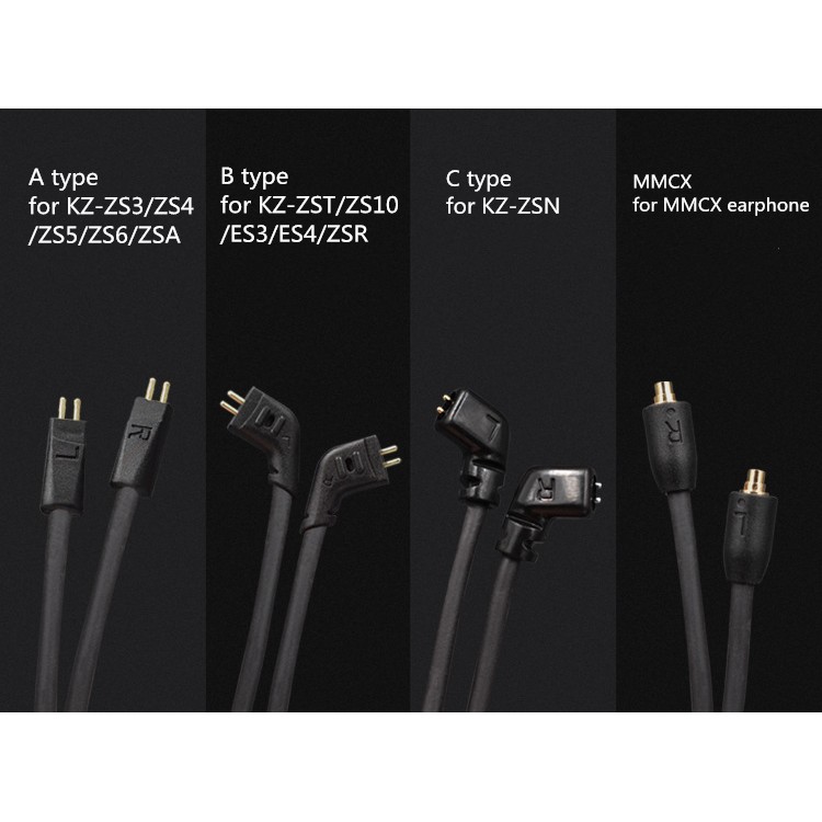 Chốt A phù hợp với ZS3 / ZS5 / ZSA / ZS6 Chốt B phù hợp với ZST / ZSR / ED12 / ES3 / ES4 / AS10 / ZS10 Chốt MMCX dành cho tai nghe MMCX Chốt C phù hợp với KZ ZSN