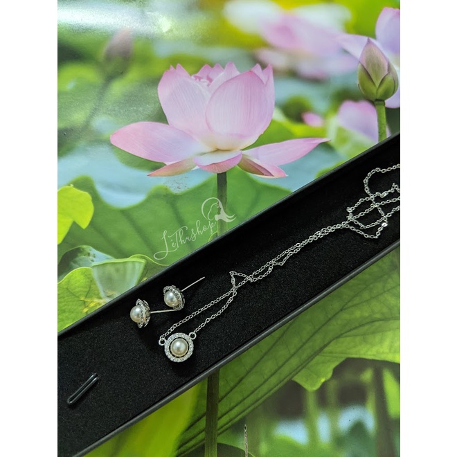 ❤Set dây chuyền và hoa tai được làm từ bạc Sterling 925 kết hợp ngtrai nước ngọt, đường kính hạt tr.ai 0,8cm, đường kính mặt 1cm. Độ dài dây 42-45cm.