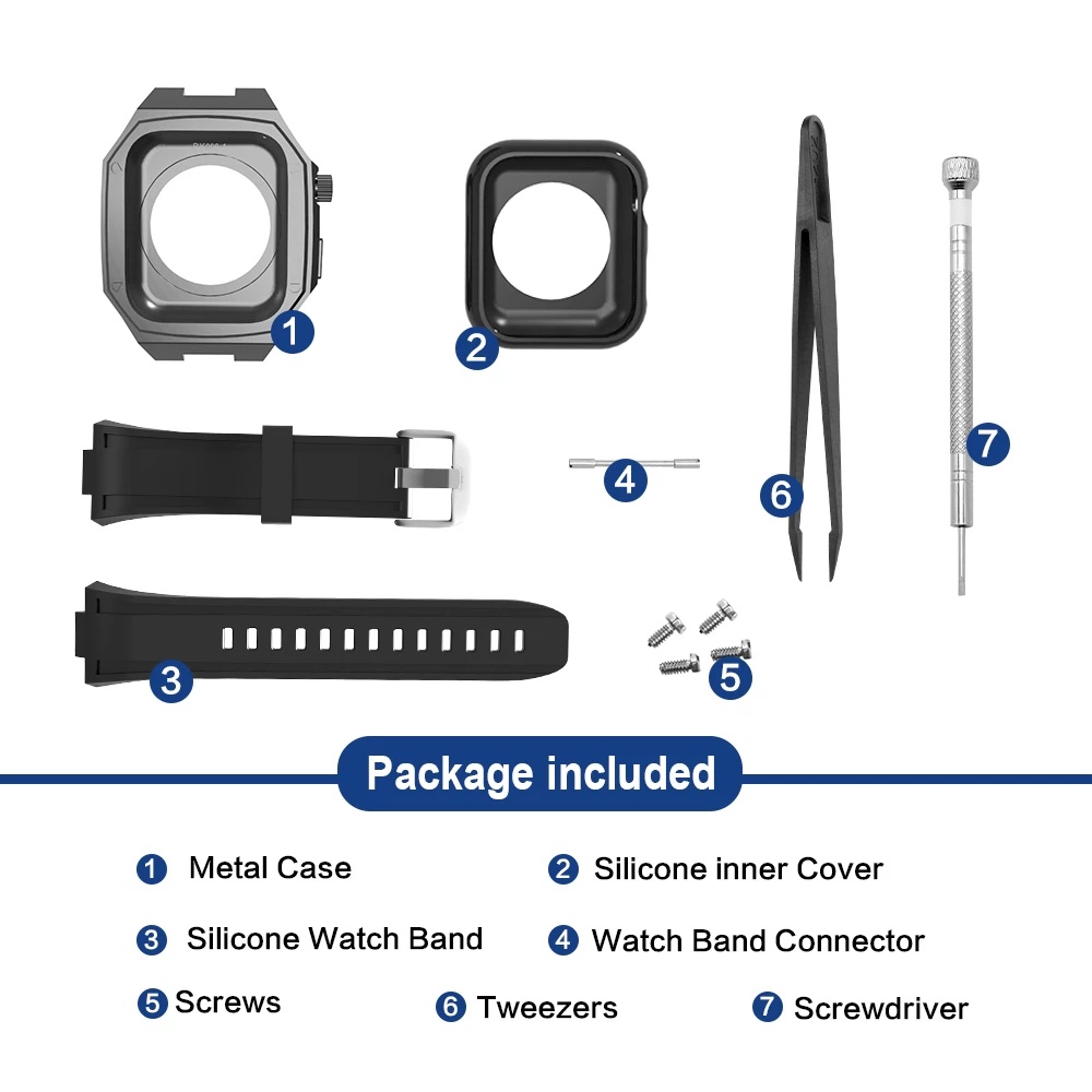 4. Cài đặt và sử dụng, không phức tạp: Hộp đựng dây đeo bảo vệ cấp quân sự khớp chính xác các lỗ và nút của apple watch, không có bất kỳ ảnh hưởng nào đến hoạt động của iwatch. Ngoài ra, không cần phải tháo hộp đựng đồng hồ trước khi sạc iWatch của bạn. Gói hàng bao gồm tuốc nơ vít từ tính, rất dễ lắp sau khi lắp bằng vít.