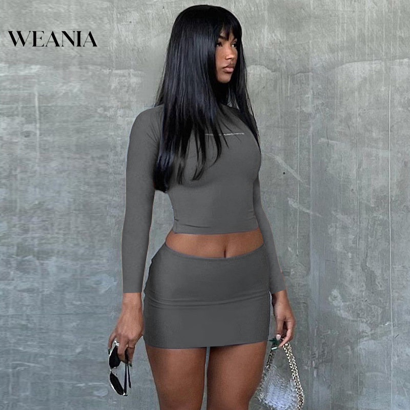 Giới thiệu Set Đồ 2 Món Gồm Áo Thun Crop Top Tay Dài In Chữ + Chân Váy Mini Cho Nữ