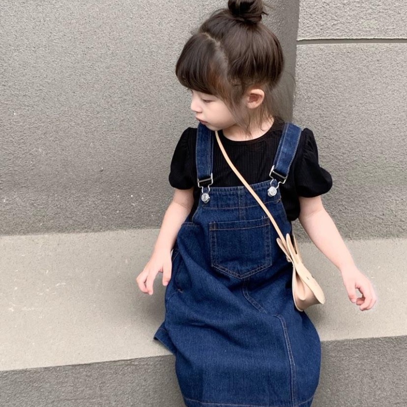 Giới thiệu Set Đồ Mùa Hè 2 Món Gồm Áo Thun Cotton + Váy Yếm Denim Dáng Rộng Cho Bé Gái