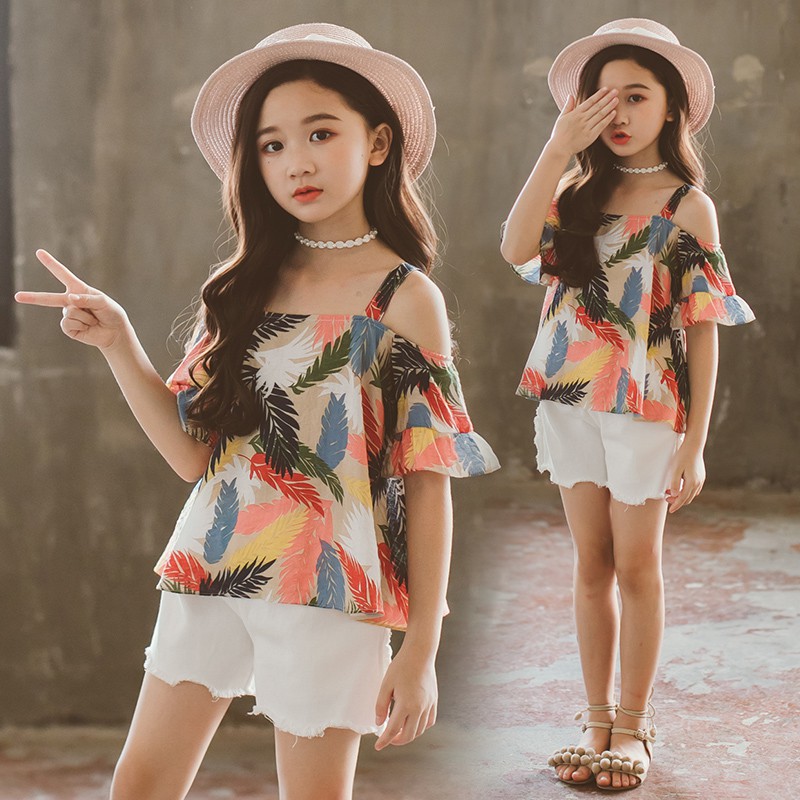 Features: 100% brand new new and high quality Do you worry about the material of the clothes will hurt your little kids' skin? Our outfits are made of cotton, soft and breathable, harmless to kids' skin Great for daily wearing, birthday party, school clothes,travelling and photography Distinctive and unique design make your little one get lots of compliments with this clothes set Casual floral print cotton short sleeve off-shoulder t-shirt and shorts, which will make your kids look cool and attractive The clothes set have 6 size, suitable for kids from 3 to 12 years old wear in summer Both machine wash and hand wash are available. Suit for daily wear, picnic and photo shoot Please refer to the Size Chart below for detail in product description before purchase