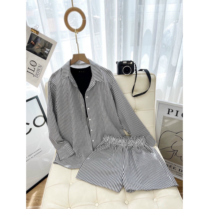 Giới thiệu Set đồ nữ áo sơ mi quần short lưng chun NPSHOP, set áo phối quần nữ NPSET011