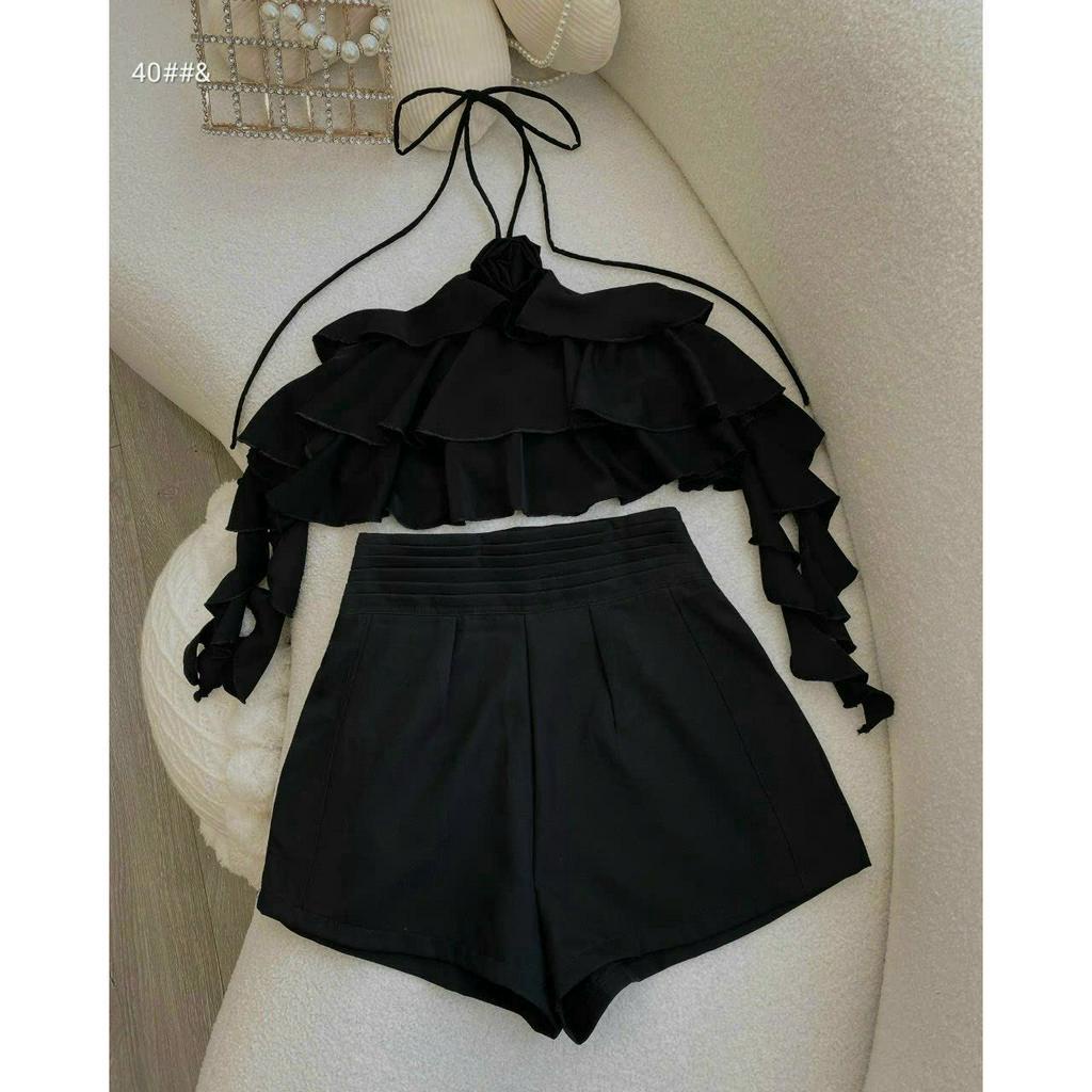 Giới thiệu Set đồ nữ đi chơi, set áo tua rua cổ yếm phối quần đùi dính nơ nhiều màu xinh xắn cho nàng đi chơi, đi bar đều xinh