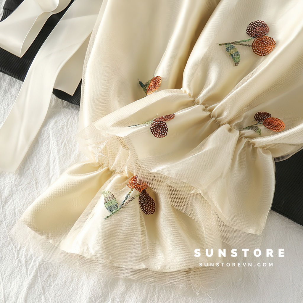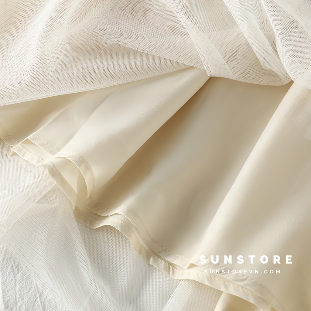 Giới thiệu Set đồ nữ đi chơi xinh tiểu thư áo thun nữ kiểu dài tay và chân váy xếp tầng xoè màu be