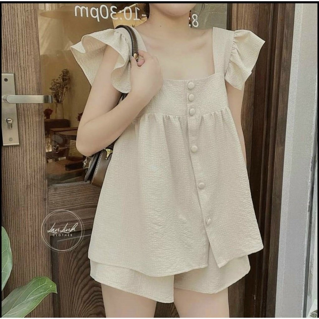 Giới thiệu Set đồ nữ mùa hè, bộ đồ nữ áo ba lỗ đính cúc dọc chất mềm mại 2 màu