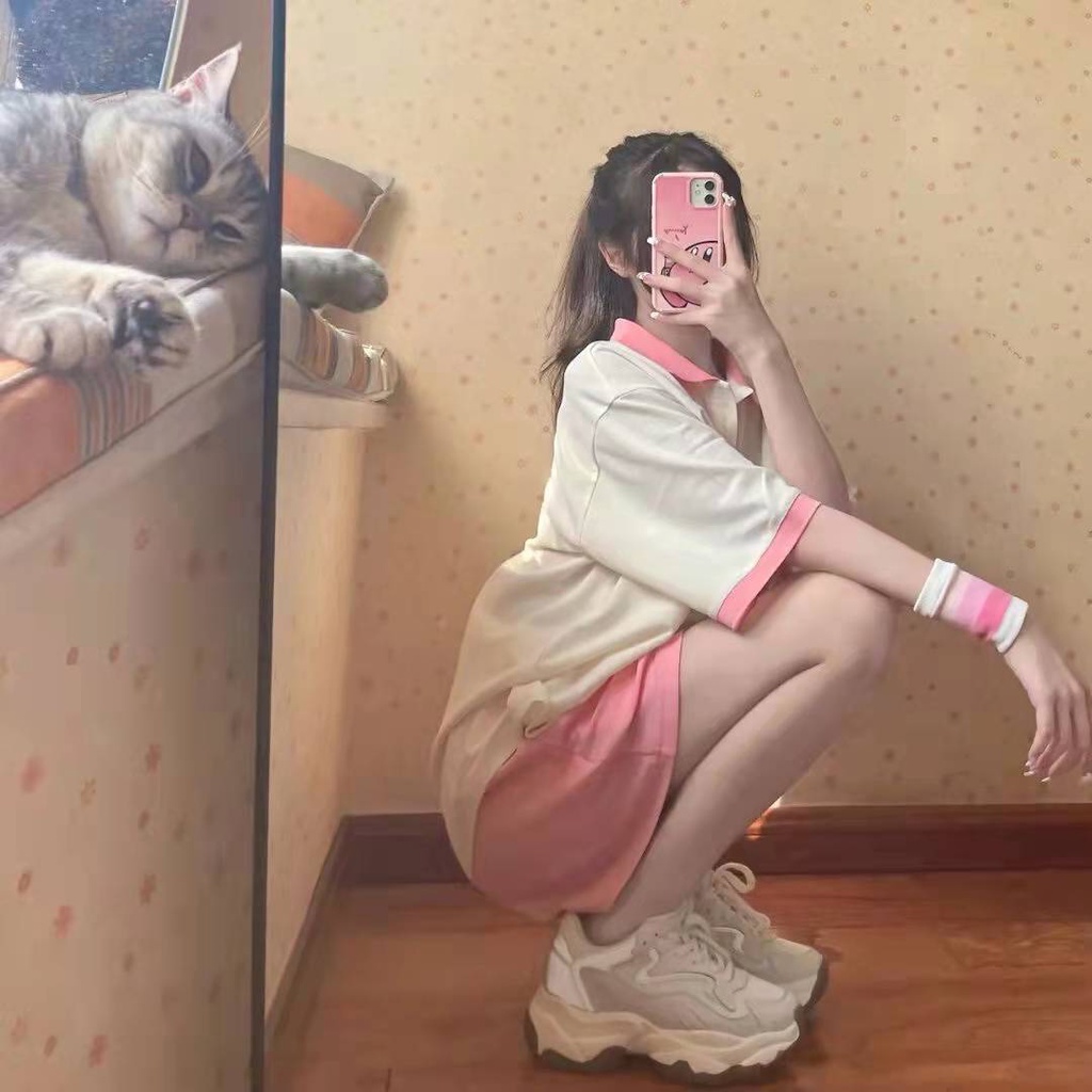 Phong cách: ngọt ngào và tươi mát Các yếu tố phổ biến: màu đồng nhất, đường khâu, nút Phong cách: phù hợp với váy Chiều dài tay áo: Tay ngắn Tên chung của vải: cotton polyester