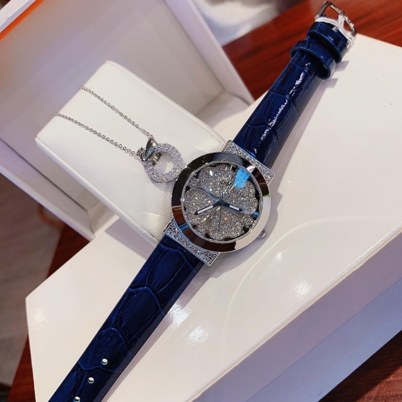 Giới thiệu Set Đồng hồ nữ MELISSA dây da xanh với vòng cổ .