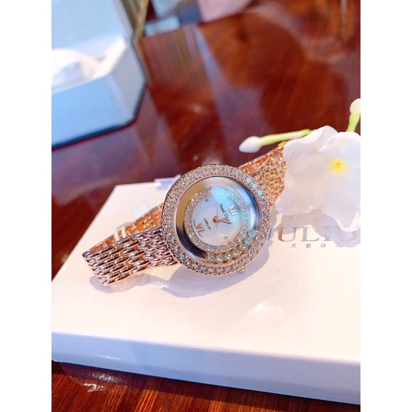 📍Case 32mm ( mặt mỏng ) 📍Mặt đồng hồ được gắn full đá Swa nổi bật , dễ phối đồ 📍Viền đá Swarovski sáng lung linh xoay xoay yêu yêu Chịu nước 30m Bền vô địch trong giới đồng hồ. Bên e sẵn ship + Vòng cổ + chuôi tai cực bền ạ Full Box Chính Hãng
