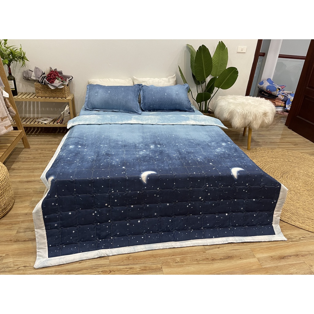 Nhà Cửa & Đời Sống > Chăn, Ga, Gối & Nệm > Bộ trải giường, vỏ gối & hộp đựng > Set ga gối chăn hè chần bông 5 món Cotton EMMIBedding, mẫu màn đêm mền cotton họa tiết đáng yêu