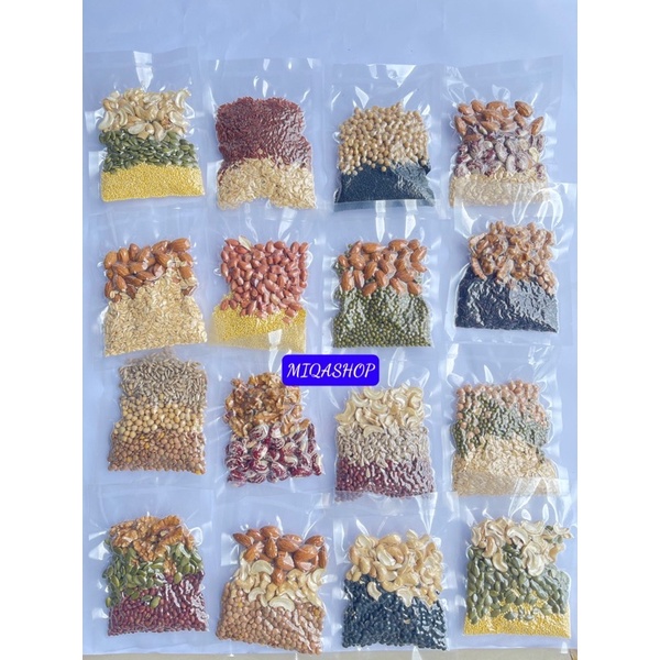 Mỗi set chỉ bao gồm 2-3 loại hạt để cảm nhận được hương vị riêng của từng loại hạt, nếu cần tư vấn thêm thì đừng ngại nhắn cho shop biết nhé.