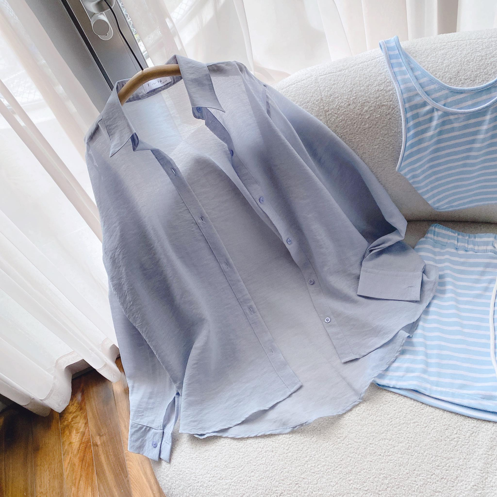 Giới thiệu SET KHOÁC SƠ MI XANH + ÁO SỌC XANH + CHÂN VÁY SỌC