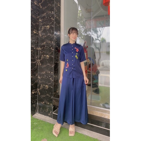 Giới thiệu set lụa đồ lam đi chùa cao cấp, cá ngọc quần váy