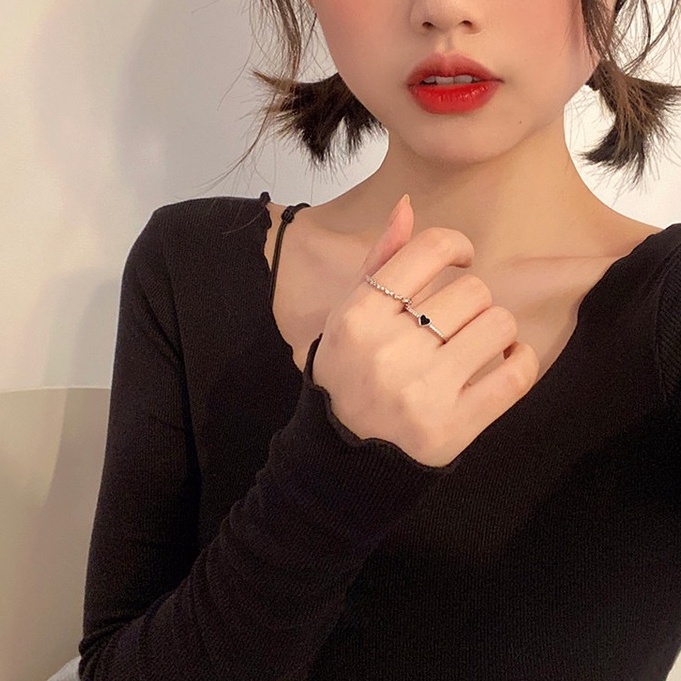 Giới thiệu Set Nhẫn Đính Đá zircon Đen Hình Trái Tim Cho Nữ