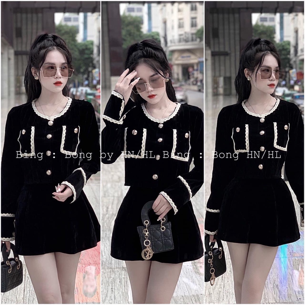 Giới thiệu Set nhung viền ren mix chân váy ngắn BN615