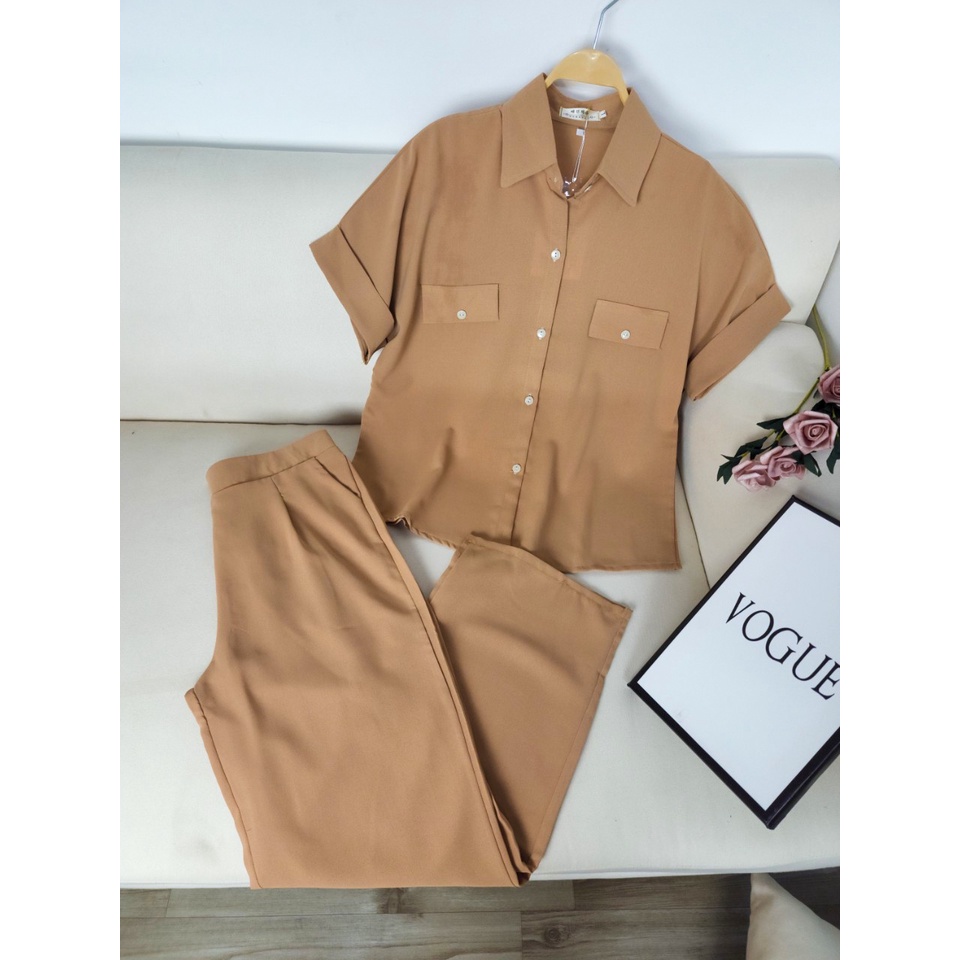 Giới thiệu Set quần rộng ống suông nữ lưng cao KÈM ÁO SƠ MI chất đũi lụa cao cấp loại 1 trẻ trung sang trọng DB04