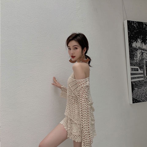 Giới thiệu Set Ren Bikini Đi Biển 2 Mảnh Áo Choàng Len Móc Tay Dài Cổ Tròn Kiểu 12 | Smide Clothing