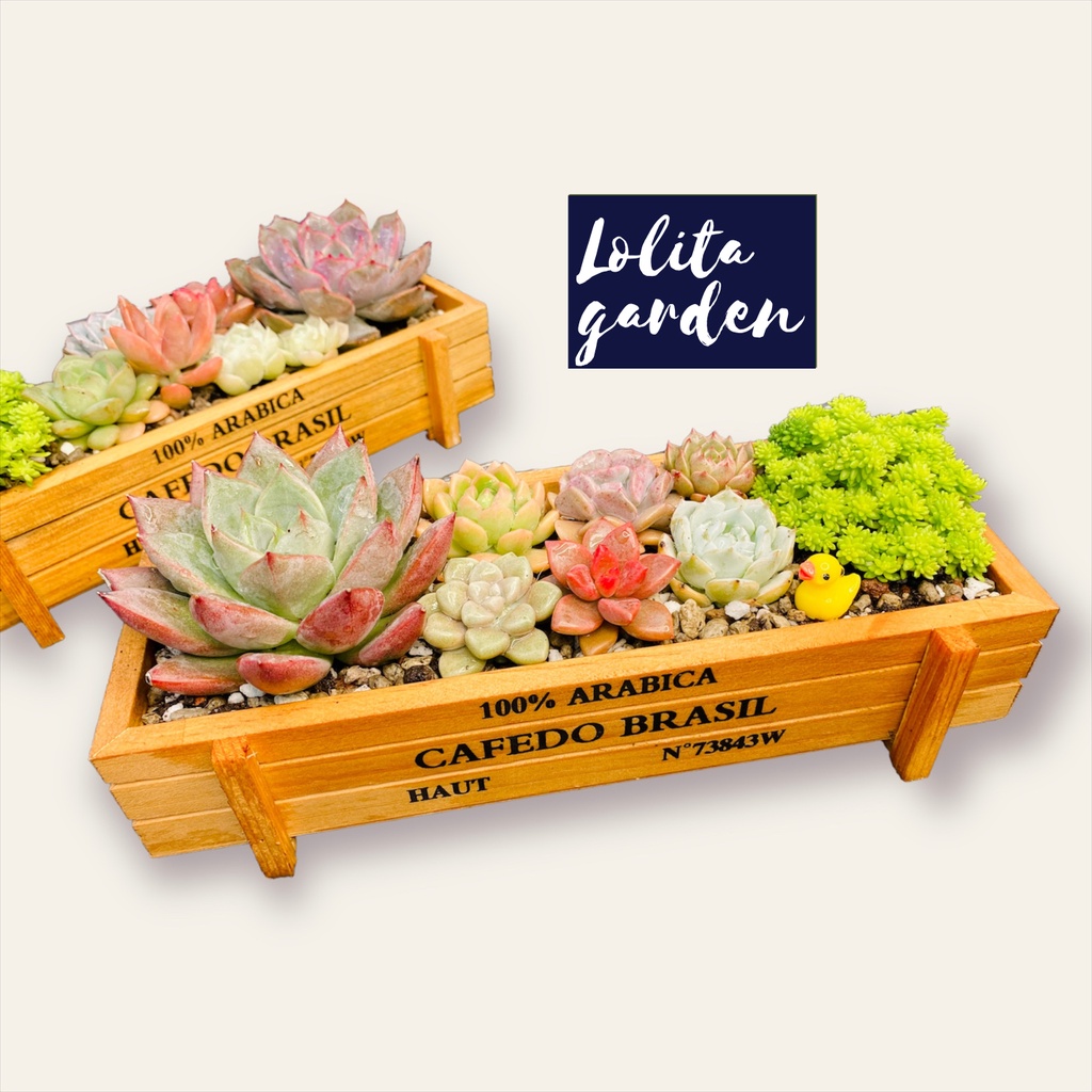 Giới thiệu Set sen đá trồng chậu gỗ Arabica kèm đất cây cảnh trang trí nhà cửa Lolita garden