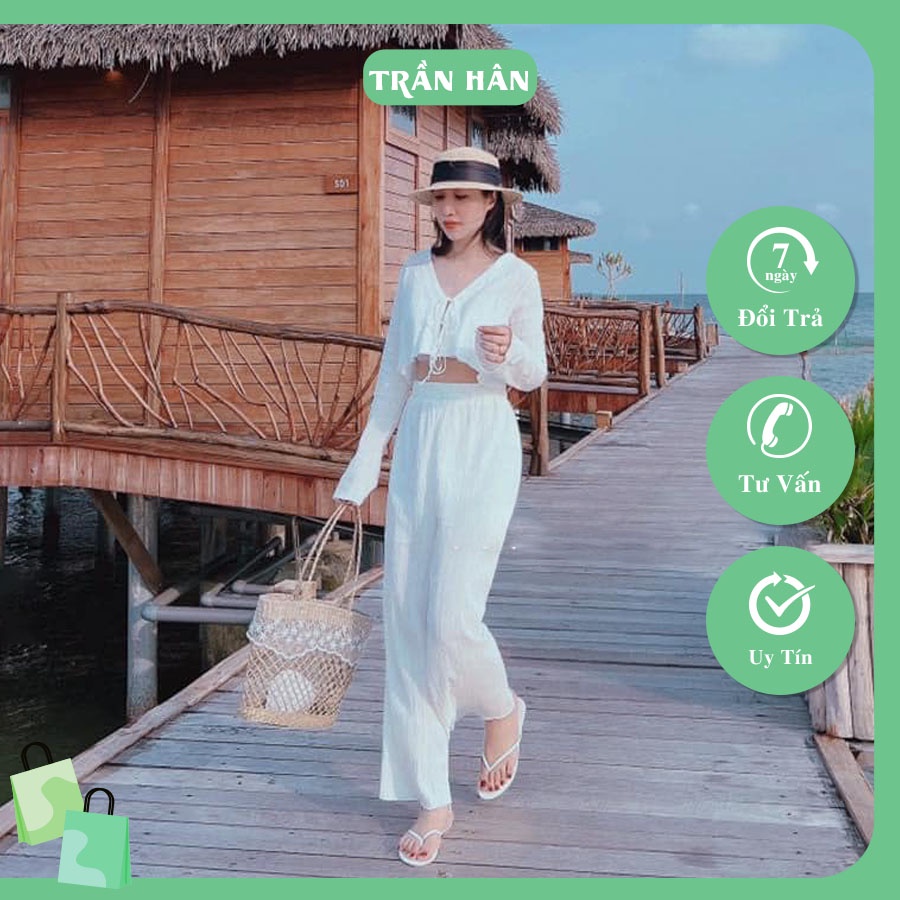 Giới thiệu Set sơ mi đũi gân cột dây kèm quần siêu xinh tiểu thư sang chanhrI Trần Hân Shop 4012382