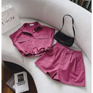 Giới thiệu SET SƠ MI TAY CỘC CROPTOP BO CHUN + QUẦN SHORT HỒNG (TH)