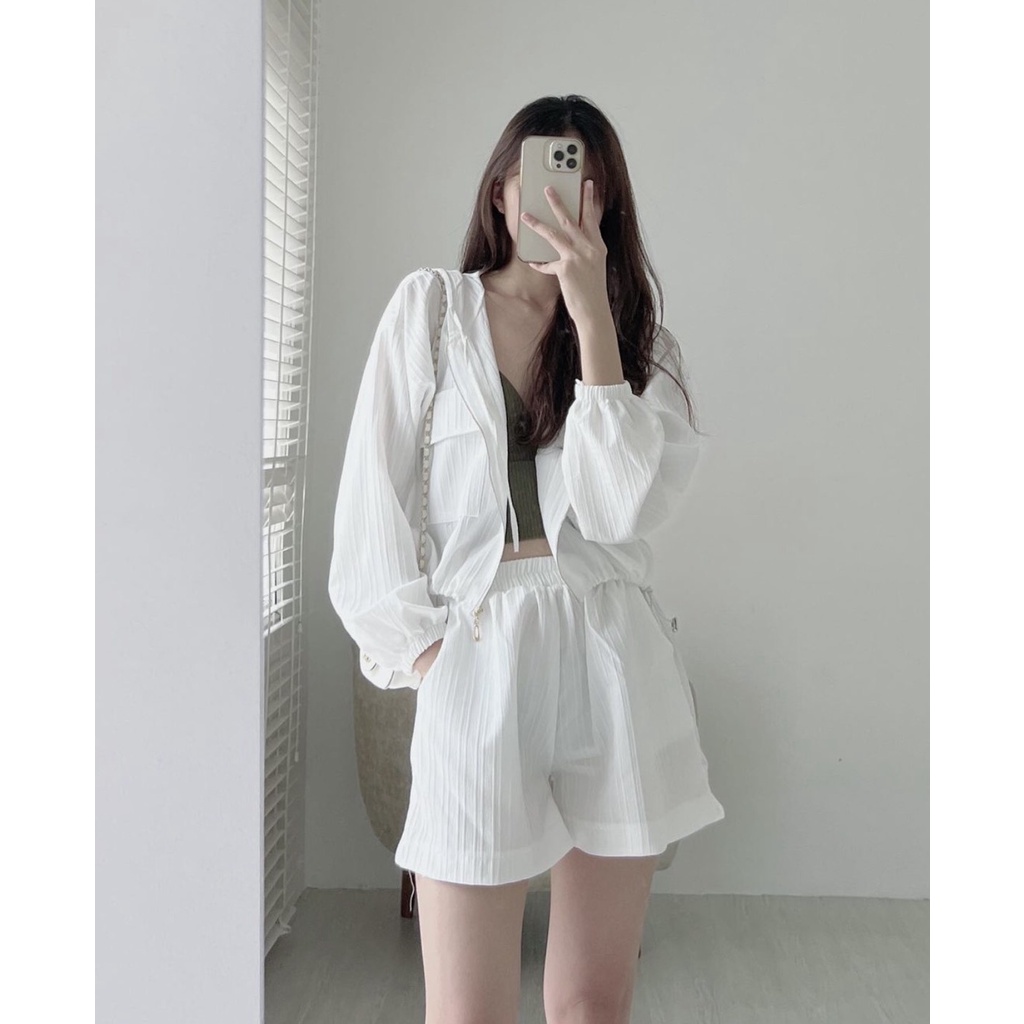 Giới thiệu Set thể thao áo khoác nhăn dài tay kèm quần short màu trơn