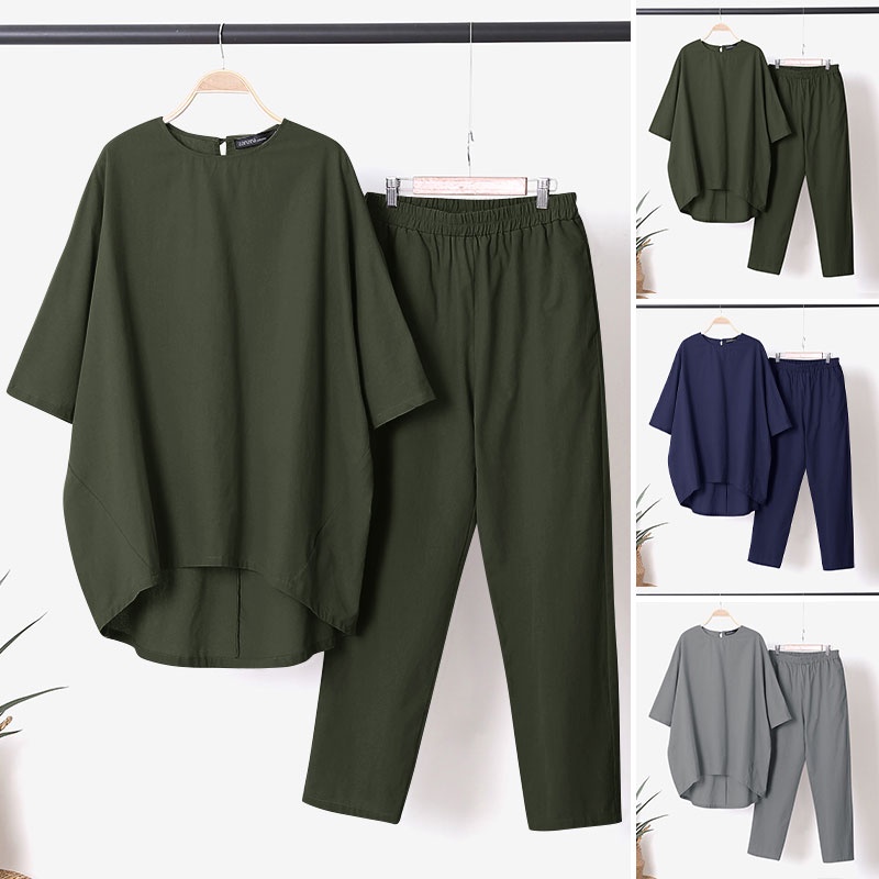 Giới thiệu Set trang phục ZANZEA áo tay lửng và quần dài dáng rộng phong cách Châu Âu thời trang dành cho nữ