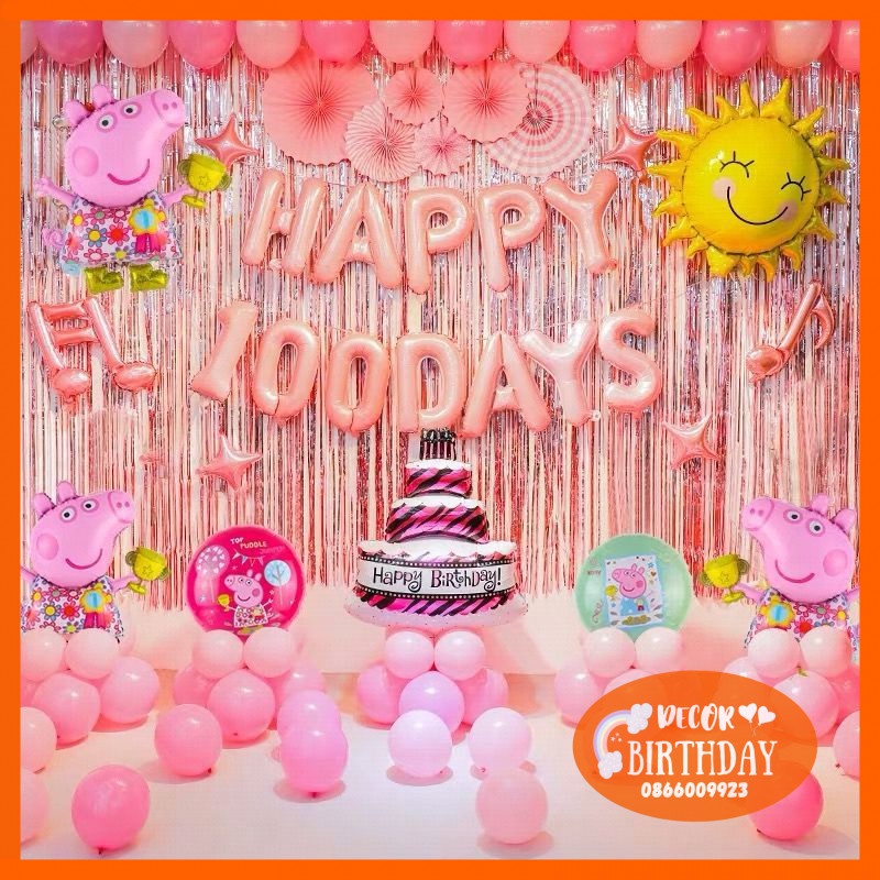 Giới thiệu Set Trang Trí Sinh Nhật TUỔI HEO Cho Bé Gái, Bóng Y Hình Tặng Kèm Đồ Bơm Băng Dính Bóng