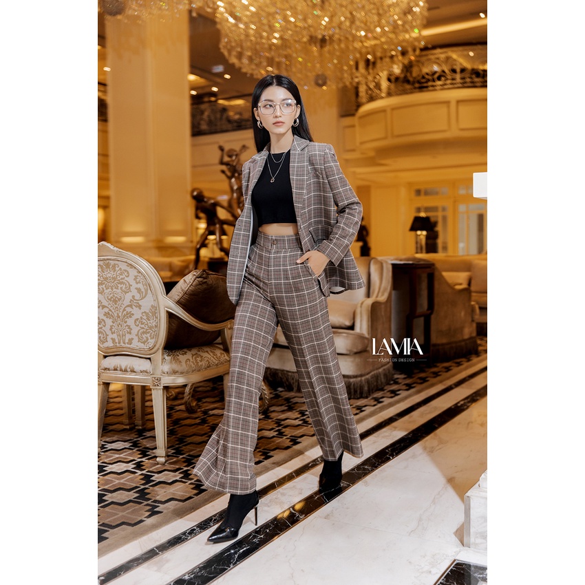 Giới thiệu Set vest công sở nữ Lamia Design LE169 màu ghi họa tiết kẻ dáng suông hiện đại sang trọng