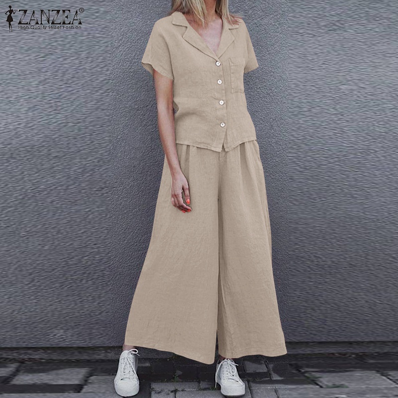 Giới thiệu Set ZANZEA áo thun ngắn tay + quần dài ống rộng thời trang nữ