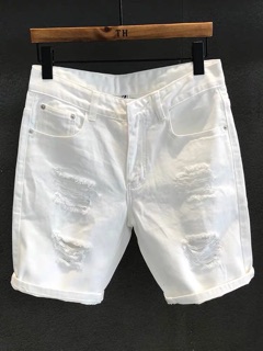 Quần short jean nam cao cấp trắng rách bụi bặm MS017