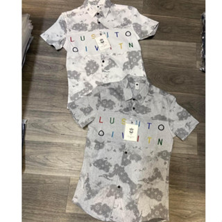 Áo sơ mi nam ngắn tay cao cấp sơ mi LV đũi phối thêu 2 màu loang xịn