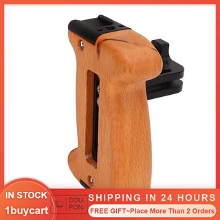 1buycart Wooden Side Handle Grip Adjustable with 1/4in Thread Holes Cold Shoe Mount for Camera DV Video Cage