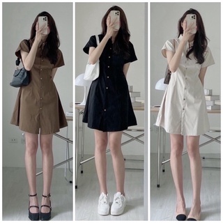 [HÀNG SẴN/VIDEO] VÁY ĐẦM KAKI CỔ ĐỨC THÔ CHUN EO CÚC GỖ SIÊU XINH HÀNG ĐẸP