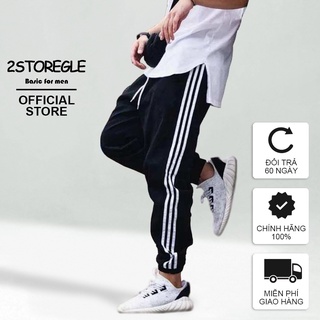 Quần Thể Thao Nam Đen Ba Sọc Trắng 2STOREGLE Kiểu Dáng Ống Suông Ống Bo Chất Vải Không Xù Lông