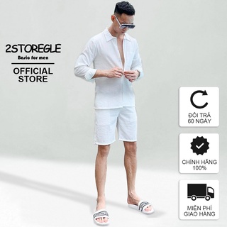 Quần Short Đũi Nam Trắng 2STOREGLE Thời Trang Trẻ Trung Vải Đũi Mịn Không Xù Lông