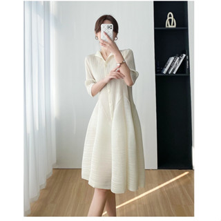 (HÀNG SẴN) Đầm chất lò xo cổ sơ mi tay lỡ phối tùng xòe che khuyết điểm - Váy sơ mi chiết eo che khuyết điểm - Freesize