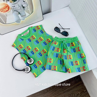 Bộ ba lỗ áo xanh quần kẻ ô bé trai