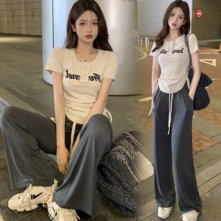 Bộ Áo Lụa Băng + Quần Dài Dây Rút Phong Cách Mỹ Thời Trang Mùa Hè Cho Nữ