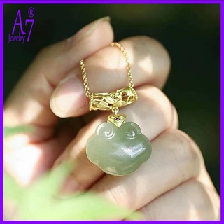 A77 | Vòng cổ Mặt Ngọc Bích Trắng Mạ Vàng Phong Cách Trung Hoa Cổ Điển Y1269