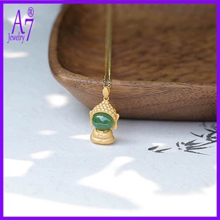 Vòng cổ Mạ Bạc 925 Mặt Hình Phật Đính Ngọc Bích Thời Trang Cho Nữ