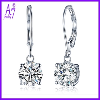 Khuyên tai mạ bạc 925 mặt tròn đính đá 1 karat nhân tạo phong cách mới thời trang