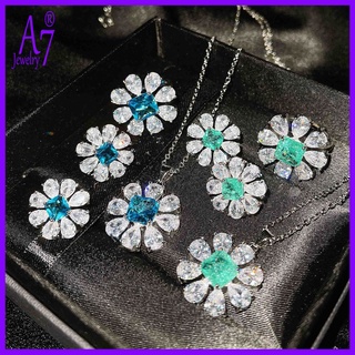 Bộ vòng cổ + bông tai + nhẫn đính đá kim cương nhân tạo siêu nhạy