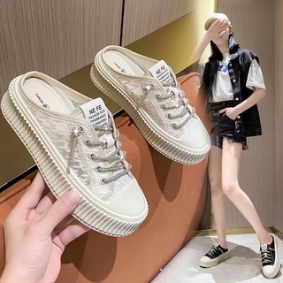 Dép Bít Mũi Đế Dày Tăng Chiều Cao Phối Lưới Thoáng Khí Phong Cách Mới Mùa Hè