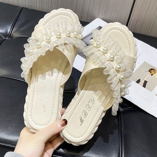 Dép Đi Biển Đế Dày Đính Ngọc Trai Thiết Kế Mới Cao Cấp Thời Trang