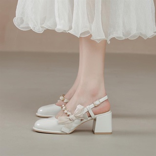 Giày Cao Gót Mũi Vuông Đế Dày Phong Cách Pháp